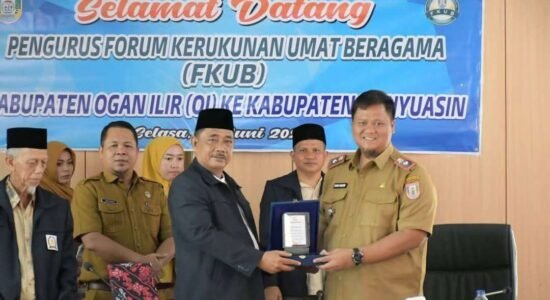 BANYUASIN, TRIKPOS.com – Upaya memperkuat kerukunan umat beragama di Sumatera Selatan terus digalakkan. Forum Kerukunan Umat Beragama (FKUB) Kabupaten Ogan Ilir melakukan kunjungan kerja ke Kabupaten Banyuasin, Selasa (10/6/2025), yang berlangsung di Rumah Dinas Sekretaris Daerah Banyuasin.