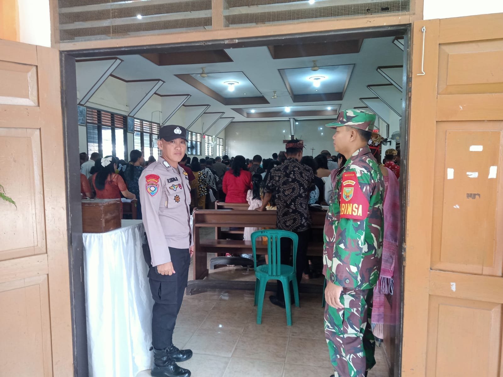 TRIKPOS.COM, LAMPUNG – Aparat gabungan Babinsa Kodim 0429/Lamtim bersama Bhabinkamtibmas Polres Lamtim melaksanakan pengamanan beberapa Gereja yang dijadikan sebagai tempat ibadah Paskah oleh umat Nasrani, Minggu (31/3/2024).