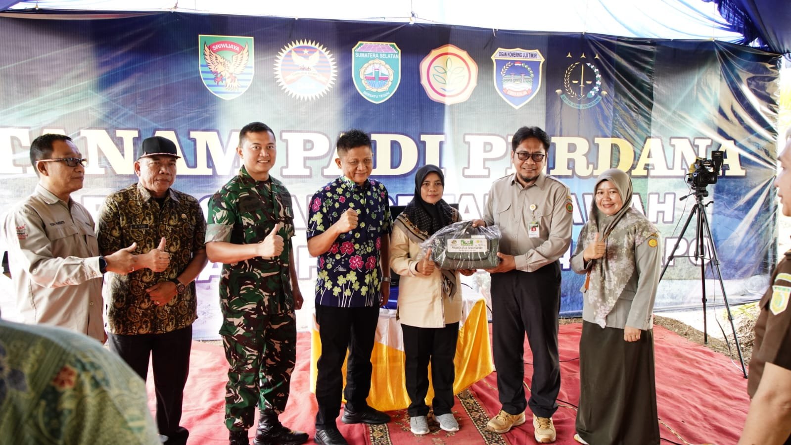 Acara dilanjutkan dengan penyerahan simbolis Perangkat Uji Tanah Sawah dari Kementerian Pertanian kepada Dinas Pertanian OKU Timur, dan ditutup dengan penanaman padi perdana oleh Bupati OKU Timur bersama jajaran TNI dan Forkopimda.