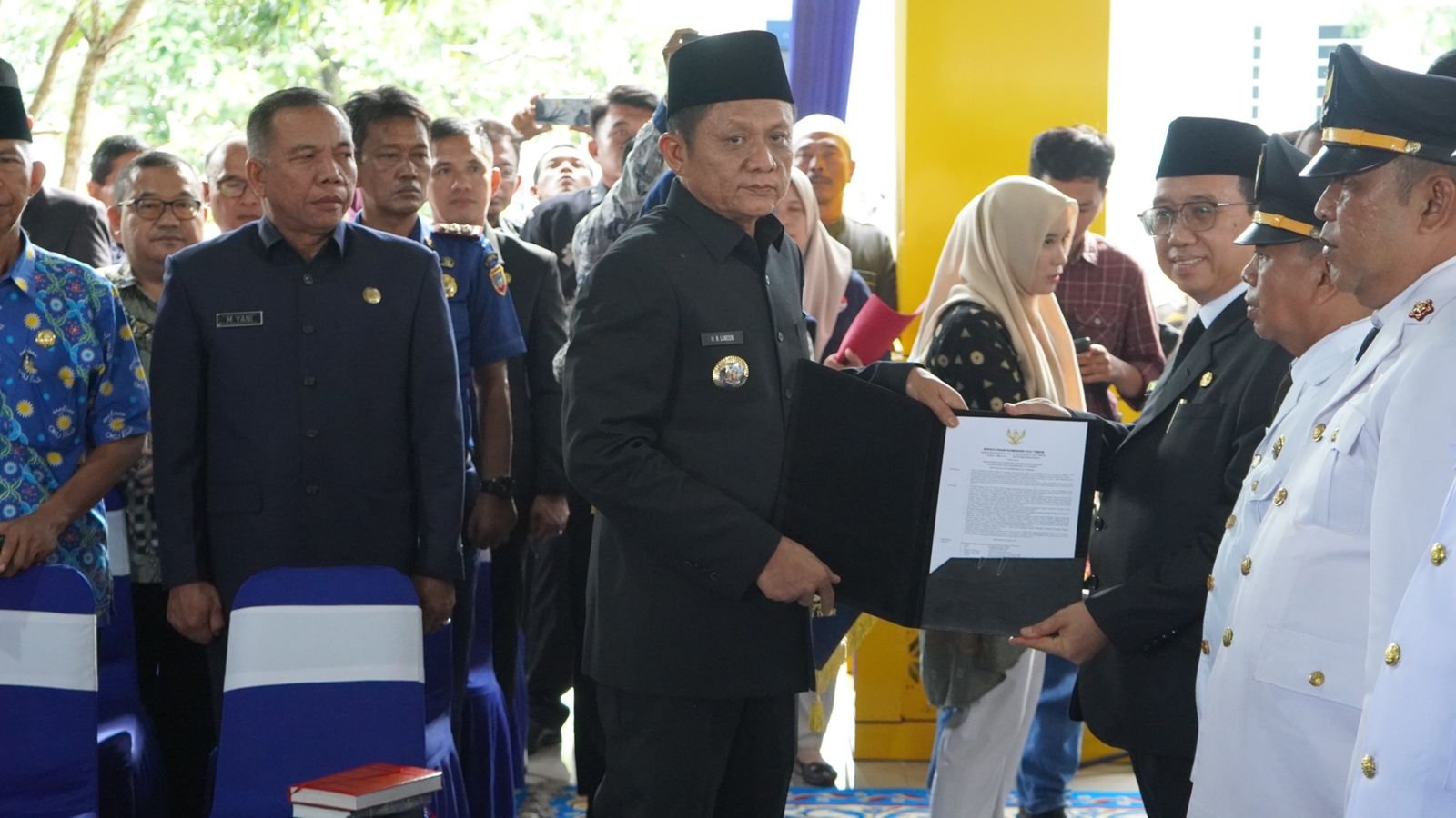 Bupati OKU Timur, Ir. H. Lanosin, S.T., M.T., M.M., melantik dan menyerahkan Surat Keputusan (SK) Pengangkatan Pegawai Pemerintah dengan Perjanjian Kerja (PPPK) Formasi 2024 Tahap II serta mengukuhkan sejumlah pejabat Eselon II di lingkungan Pemerintah Kabupaten OKU Timur. Kegiatan berlangsung di Aula Rumah Dinas Bupati Sebiduk Sehaluan, Kamis (16/10/2025).