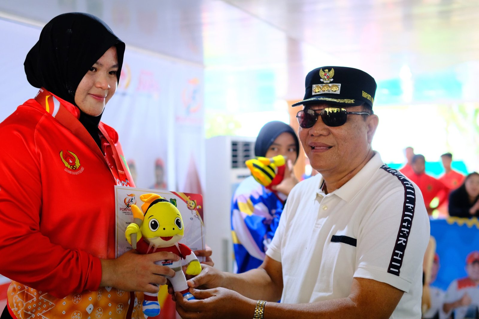 Foto : Bupati Muba HM Toha Tohet, SH serahkan mendali atlet Muba