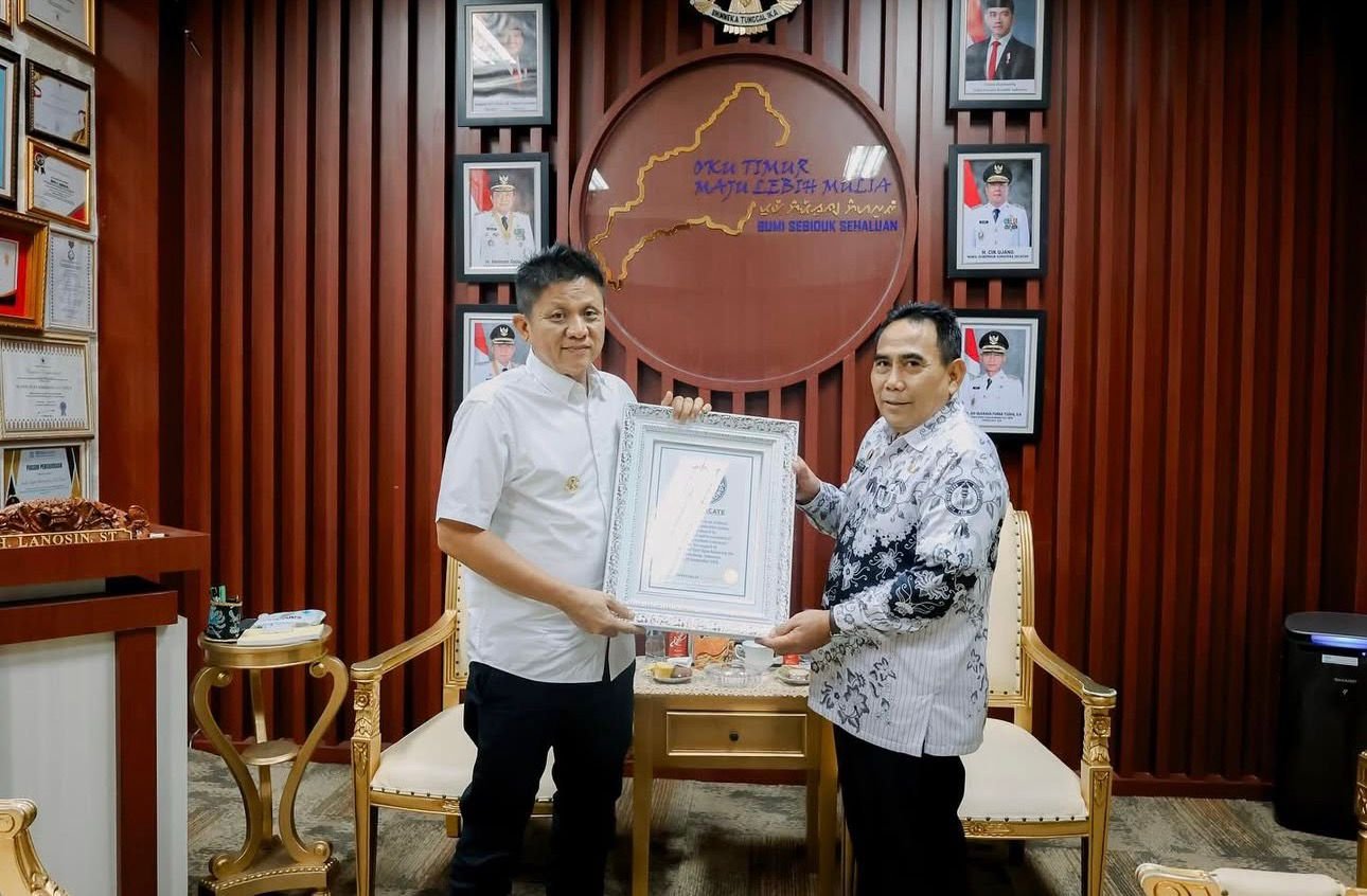 Piagam itu kemudian diserahkan Wakimin kepada Bupati OKU Timur, Ir. H. Lanosin, M.T., M.M., pada Rabu (24/9/2025) di Ruang Audiensi Bupati.