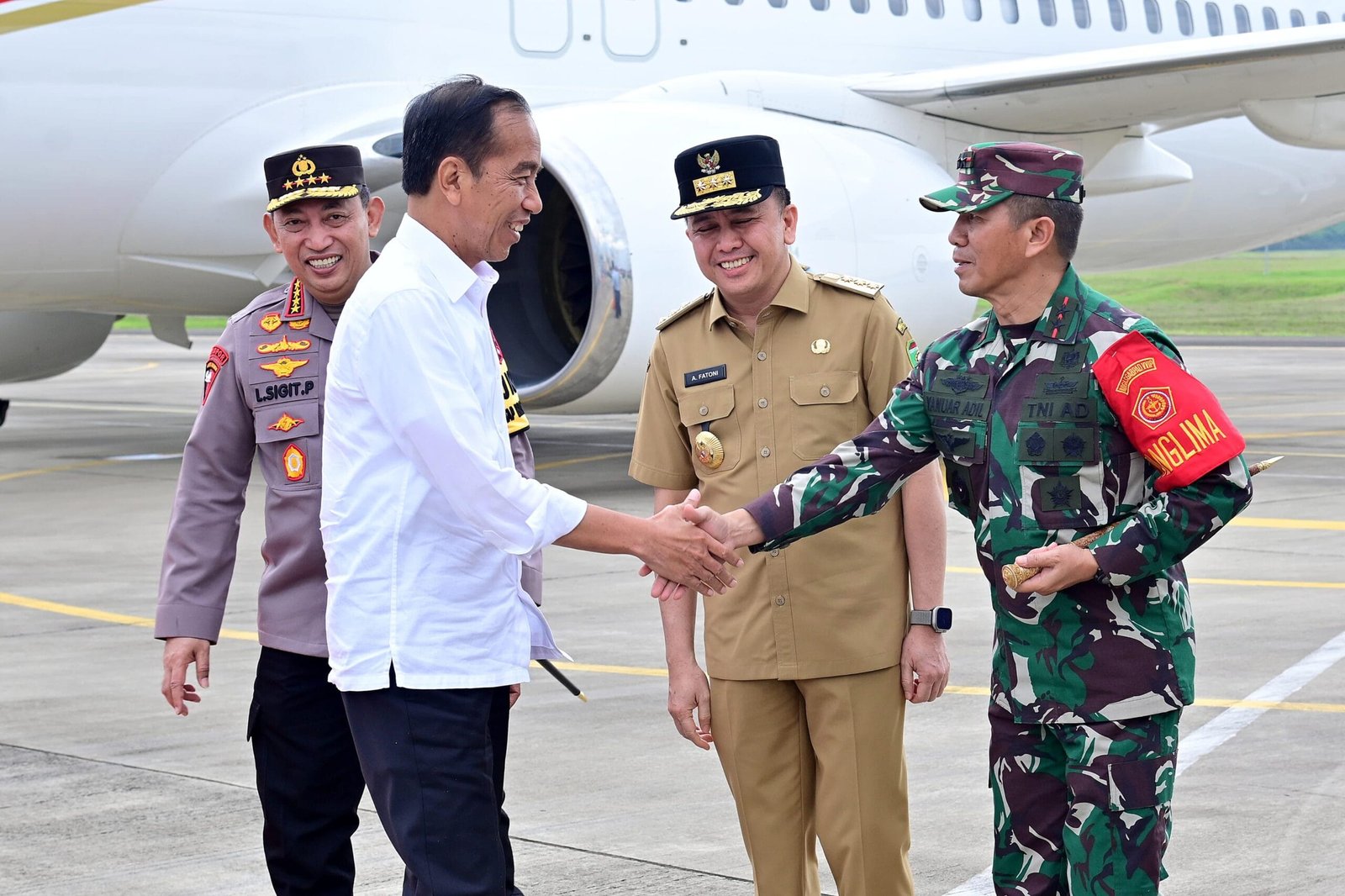Kedatangan Presiden di Palembang tiba di Bandara Sultan Mahmud Badarudin II dengan menggunakan pesawat kepresidenan.