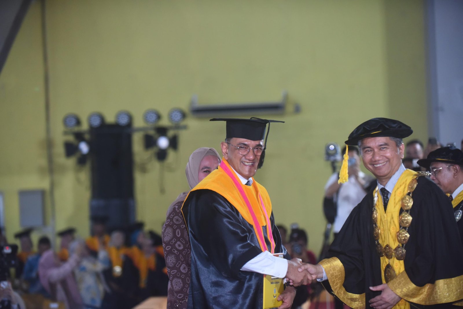 Sekretaris Daerah (Sekda) Provinsi Sumsel, Dr. H. Edward Candra, M.H., hadir mewakili Gubernur Dr. H. Herman Deru sekaligus menjadi salah satu wisudawan program doktor. Kehadiran Edward sebagai pejabat sekaligus lulusan baru Unsri menjadi simbol nyata bahwa peningkatan kualitas SDM tidak hanya dituntut, tetapi juga diteladankan oleh aparatur pemerintah.