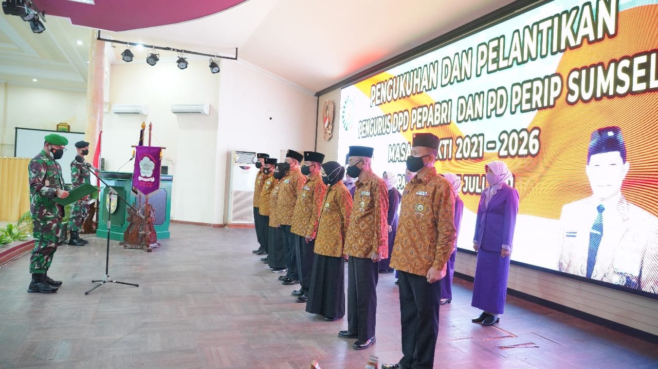 Di akhir sambutannya tak lupa juga Kasdam menyampaikan penghargaan dan terimakasih kepada segenap pengurus DPD PEPABRI dan PD PERIP Provinsi Sumatera Selatan yang telah melaksanakan tugas dalam kepengurusan DPD PEPABRI dan PD PERIP Provinsi Sumatera Selatan yang berjalan dengan baik dan sukses, Dan pada kesempatan ini Kasdam mengukuhkan susunan Pengurus DPD PEPABRI dan PD PERIP Provinsi Sumatera Selatan masa bhakti Tahun 2021 – 2026.