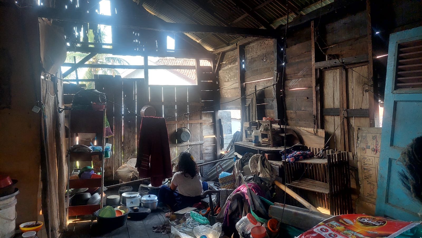 Rumah peninggalan almarhum suaminya sudah jauh dari kata layak huni. Dinding papan yang rapuh banyak terlepas, atap berlubang, hingga setiap kali hujan deras air mengalir masuk dan membasahi seisi rumah. Saat malam, udara dingin dengan mudah menembus ke dalam. Perabotan pun hanya seadanya, berantakan di sudut ruangan.