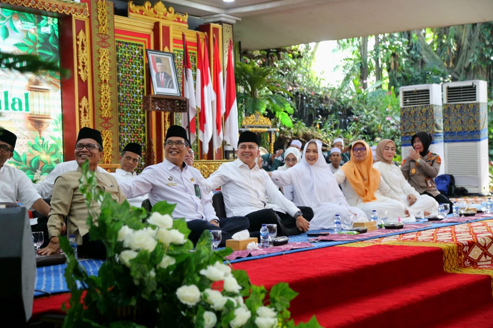 TRIKPOS.COM, PALEMBANG | Penjabat (Pj) Gubernur Sumatera Selatan (Sumsel) Agus Fatoni didampingi Pj Ketua Tim Penggerak (TP) Pemberdayaan Kesejahteraan Keluarga (PKK) Sumsel Tyas Fatoni hadiri Tabligh Akbar dan Halal Bihalal bersama jajaran pegawai di lingkungan Pemerintah Provinsi (Pemprov) Sumsel. Hal ini dilakukan guna mengeratkan silahturahmi satu sama lain di Griya Agung, Palembang, Sumatera Selatan, Jumat (19/4/2024).