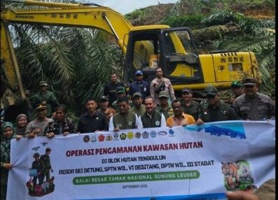 ACEH , TRIKPOS.com– Kementerian Kehutanan (Kemenhut) bersama Satgas Garuda Penertiban Kawasan Hutan (PKH), Polri, TNI, pemerintah daerah Aceh Tamiang dan Langkat, serta masyarakat setempat memulai langkah nyata pemulihan fungsi hutan di Taman Nasional Gunung Leuser (TNGL). Aksi ini ditandai dengan penumbangan kebun sawit ilegal dan rehabilitasi kawasan seluas 59,32 hektare, Kamis (4/9/2025).