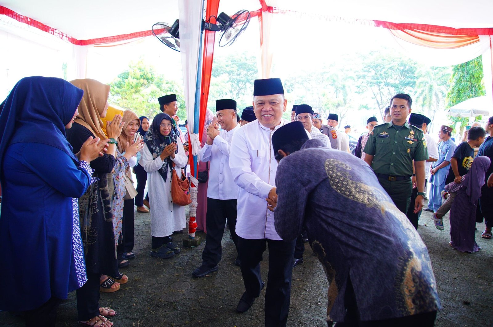 Diiringi lantunan “Sholawat”Pj Bupati Muba H Sandi Fahlepi, Sekda Muba H Apriyadi Mahmud, Kakanmenag Muba Muhammad Makki SAg bersama OPD dan Forkopimda Muba menyalami seluruh jamaah laki-laki. (#)
