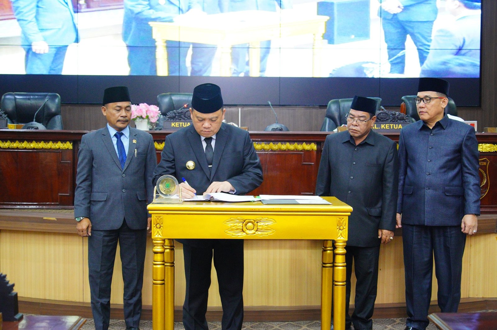 TRIKPOS.COM, MUBA- Bersama DPRD Kabupaten Musi Banyuasin, Pj Bupati Muba H Sandi Fahlepi, Senin (02/09/2024) bertempat di ruang rapat paripurna menandatangani berita acara persetujuan bersama terhadap Raperda Tentang APBD Perubahan (R-APBDP) Kabupaten Muba tahun anggaran 2024.