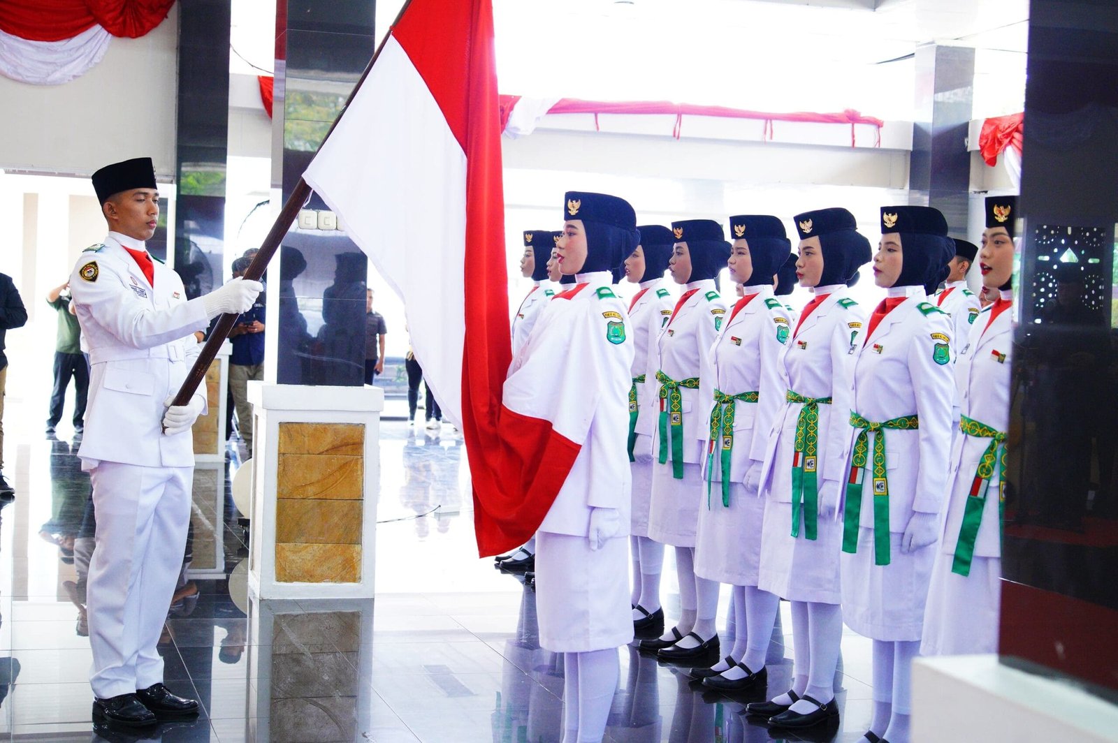 TRIKPOS.COM, SEKAYU, – Sebanyak 75 Anggota Pasukan Pengibar Bendera Pusaka (Paskibraka) Kabupaten Musi Banyuasin tahun 2024 yang akan bertugas pada rangkaian HUT RI ke-79 di Bumi Serasan Sekate resmi dikukuhkan oleh Pj Bupati Muba H Sandi Fahlepi, di Pendopoan Griya Bumi Serasan Sekate, Kamis (15/8/2024).