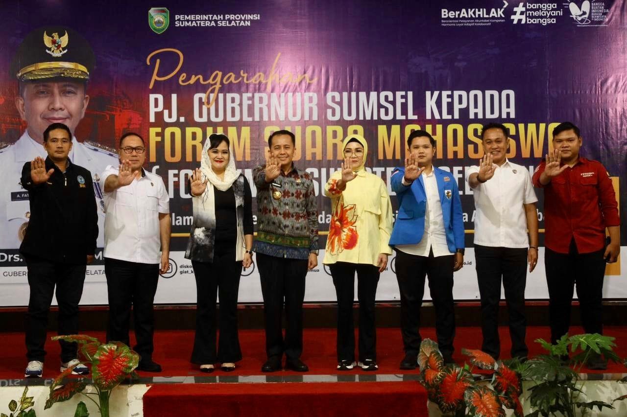 TRIKPOS.COM, PALEMBANG | Penjabat (Pj) Gubernur Sumatera Selatan (Sumsel) Agus Fatoni mengapresiasi Forum Suata Mahasiswa (Forsuma) Sumsel yang telah menyelenggarakan Diskusi Kebangsaan dan Deklarasi Anti Narkoba. Kegiatan ini berlangsung di Hotel Swarna Dwipa, Palembang, Sumatera Selatan, Sabtu (1/6/2024).