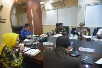 TRIKPOS.COM, PALEMBANG – Kapolda Sumsel, Irjen Pol A. Rachmad Wibowo bersama Penjabat (Pj) Gubernur Sumsel, Agus Fatoni dan Forkopimda Provinsi Sumsel, menghadiri Rapat Koordinasi (Rakor) terkait Isu-Isu Strategis dalam Pelaksanaan Pemilihan Kepala Daerah (Pilkada). Acara ini digelar di Ruang Rapat Gubernur Sumsel pada Rabu, (17/4).