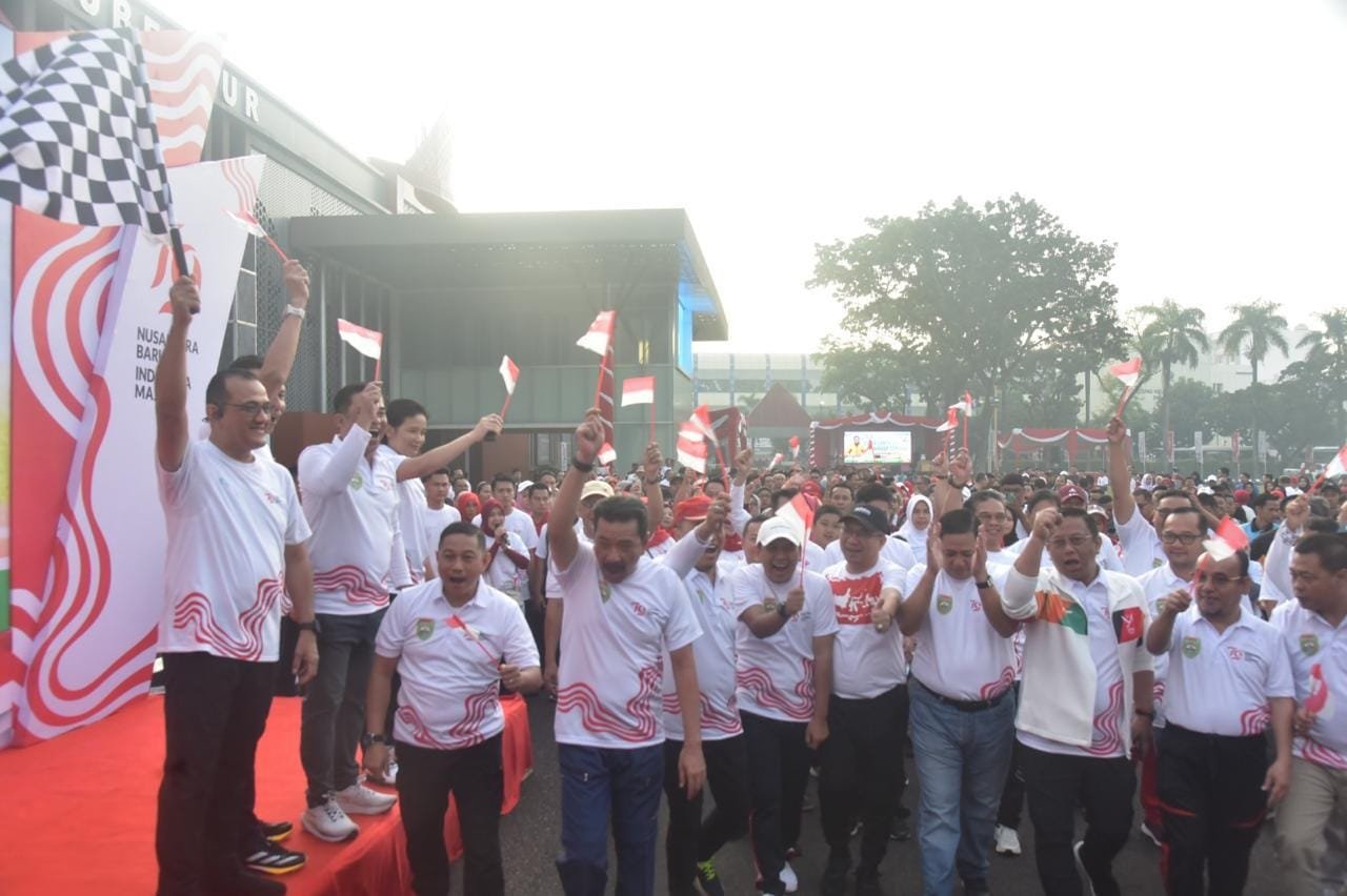 TRIKPOS.COM, PALEMBANG | Penjabat (Pj) Sekretaris Daerah (Sekda) Provinsi Sumatera Selatan (Sumsel Drs H Edward Candra, M.H melepas ribuan peserta jalan santai dalam rangka memperingati HUT Ke-79 Kemerdekaan Republik Indonesia, bertempat di Halaman Kantor Gubernur Sumsel, Minggu (11/8/2024).