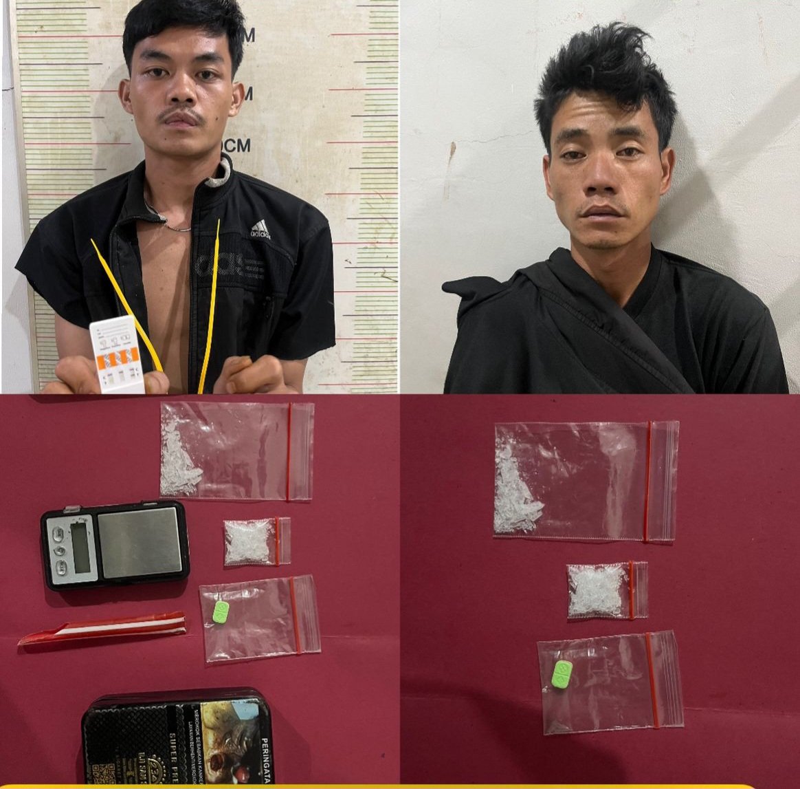 Kedua tersangka masing-masing berinisial NS (28), petani warga Muara Pinang, dan WF (21), pengangguran asal Kecamatan Lintang Kanan. Penangkapan dipimpin langsung oleh Kasat Resnarkoba bersama Kanit Idik 2 Satresnarkoba.