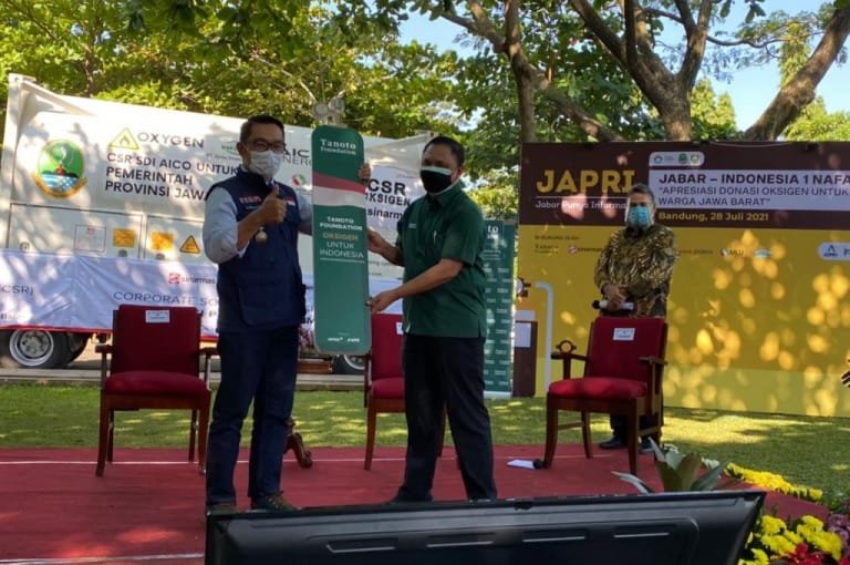 Melalui PT OKI Pulp & Paper Mills (Sinar Mas Group), Jawa Barat mendapatkan 85,8 ton oksigen cair dalam empat iso tank yang telah dilepas pengirimannya, langsung oleh Gubernur Sumatera Selatan Herman Deru, di Pelabuhan PT Gajah Unggul Internasional, Palembang, Sabtu (24/7/2021) malam.