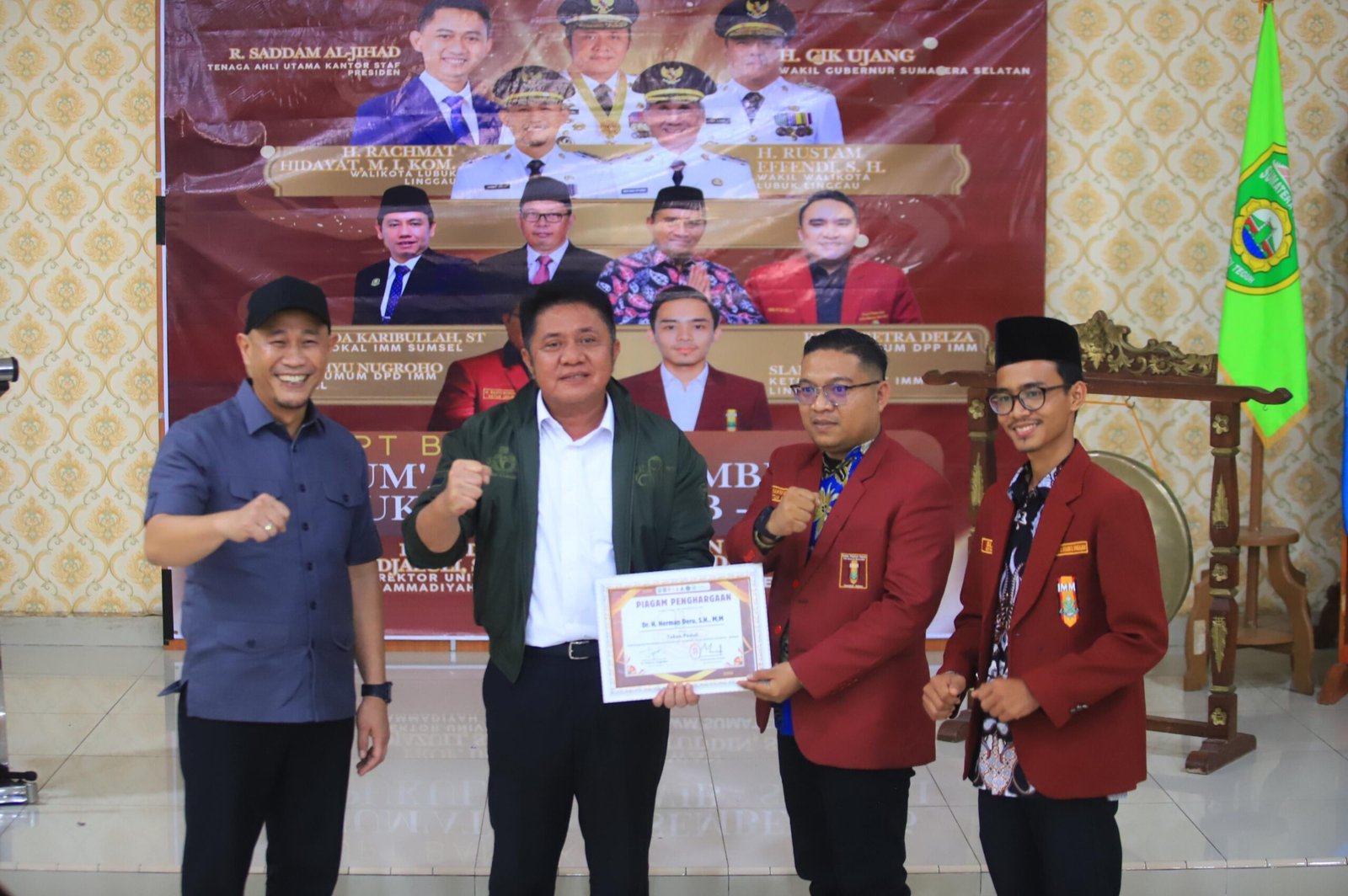 Pada kesempatan tersebut, Herman Deru juga menerima penghargaan dari DPD IMM Sumsel sebagai Tokoh Peduli Pembangunan Pendidikan, Kesehatan, dan Wirausaha Muda di Sumatera Selatan. Acara ini turut dihadiri Anggota DPR RI Fauzi Amro serta kader IMM se-Sumatera Selatan.