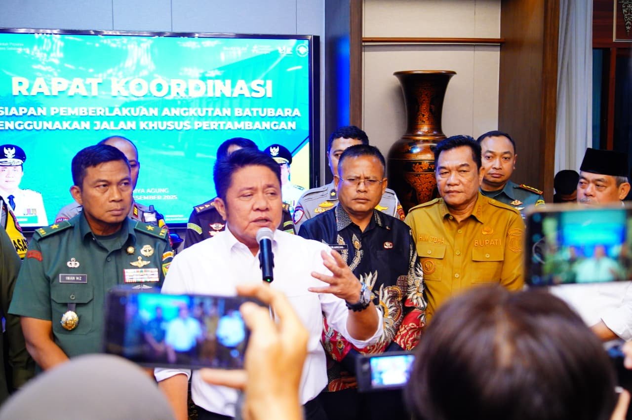 Sikap tersebut disampaikan Toha saat mengikuti Rapat Koordinasi Kesiapan Pemberlakuan Angkutan Batubara Menggunakan Jalan Khusus Pertambangan yang digelar di Griya Agung, Palembang, Selasa (30/12/2025).
