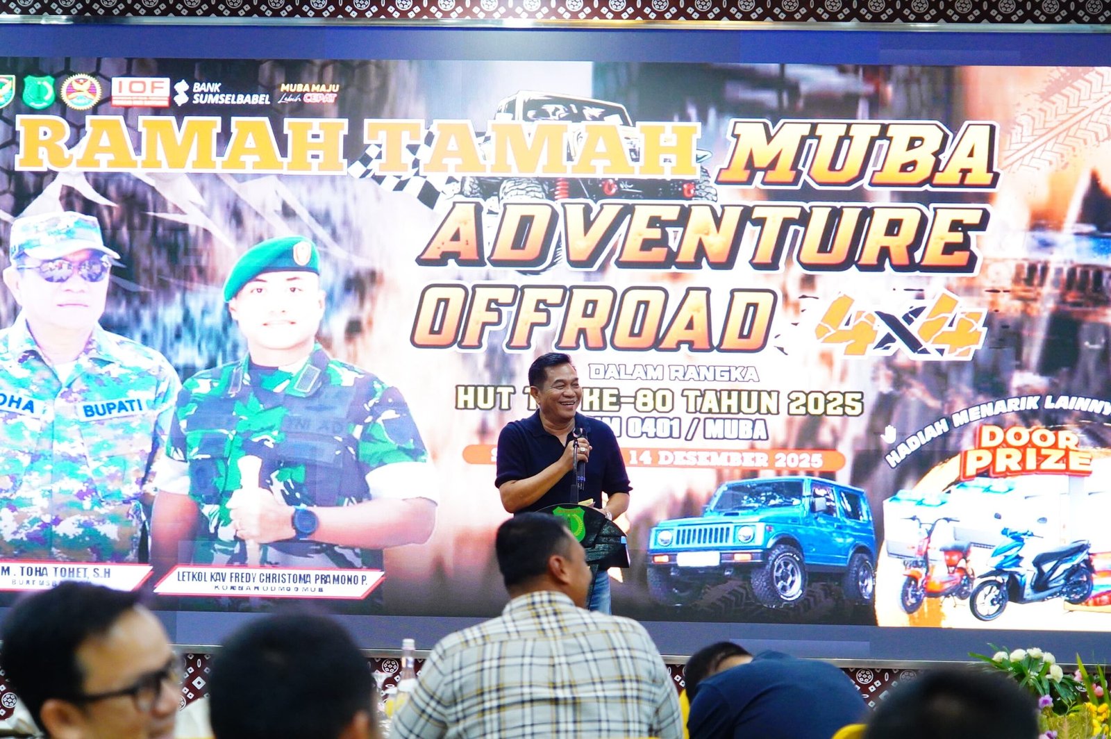 SEKAYU, TRIKPOS.com — Pemerintah Kabupaten Musi Banyuasin (Muba) bersama Kodim 0401/Muba resmi menggelar Muba Adventure Offroad 2025, sebuah ajang otomotif petualangan yang dirangkai dengan peringatan HUT Tentara Nasional Indonesia (TNI) ke-80. Kegiatan diawali dengan acara ramah tamah di Pendopoan Griya Bumi Serasan Sekate, Jumat malam (12/12/2025).