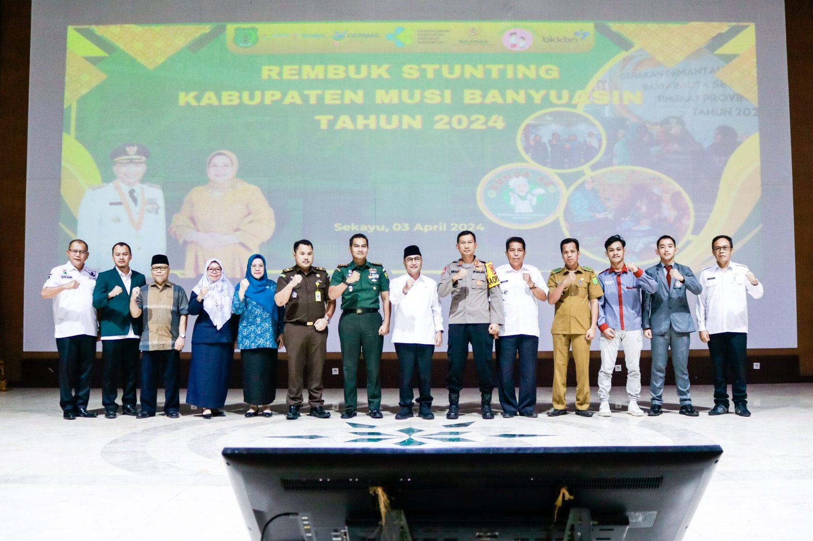 Lanjutnya, “pada kesempatan ini juga kita melaksanakan penandatangan komitmen Rembuk Stunting tingkat Kabupaten Muba tahun 2024. Tujuannya setiap lintas sektor dan pemangku kepentingan melakukan intervensi secara bersama-sama dalam percepatan penurunan stunting di Kabupaten Muba,”ucapnya.