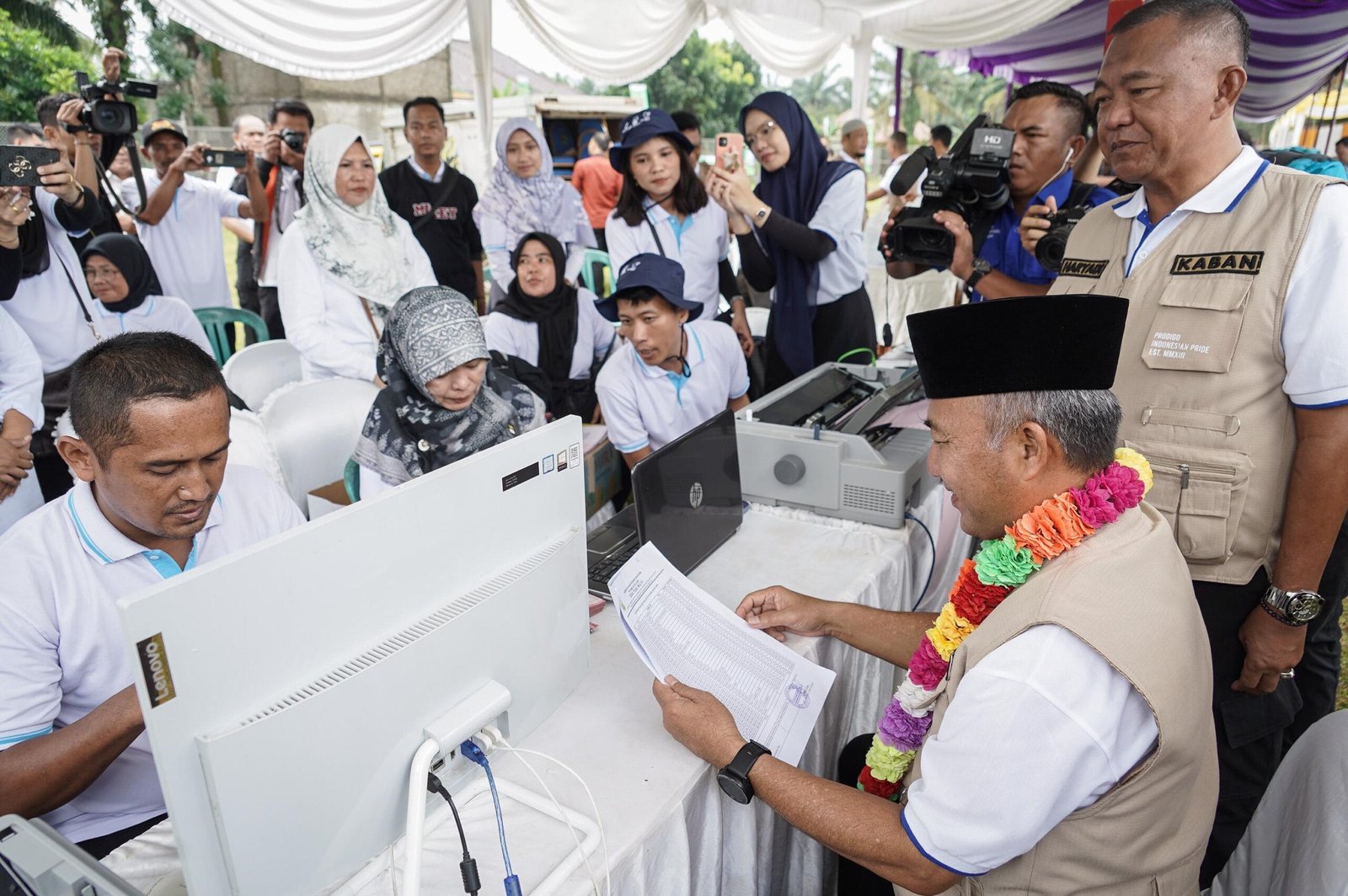 Turut mendampingi Pj Bupati Apriyadi Kepala Dinas PUPR Alpa Elan SST MPSDA, Kadisnakertrans Mursalin SE MM, Kepala TPHP Ir Thamrin MSi, Kepala DPMPTSP Riki Junaidi AP MSi, Kepala Dinkominfo Herryandi Sinulingga AP, dan Kepala Dinas PMD Erdian Syahri SSos MSi. (#)