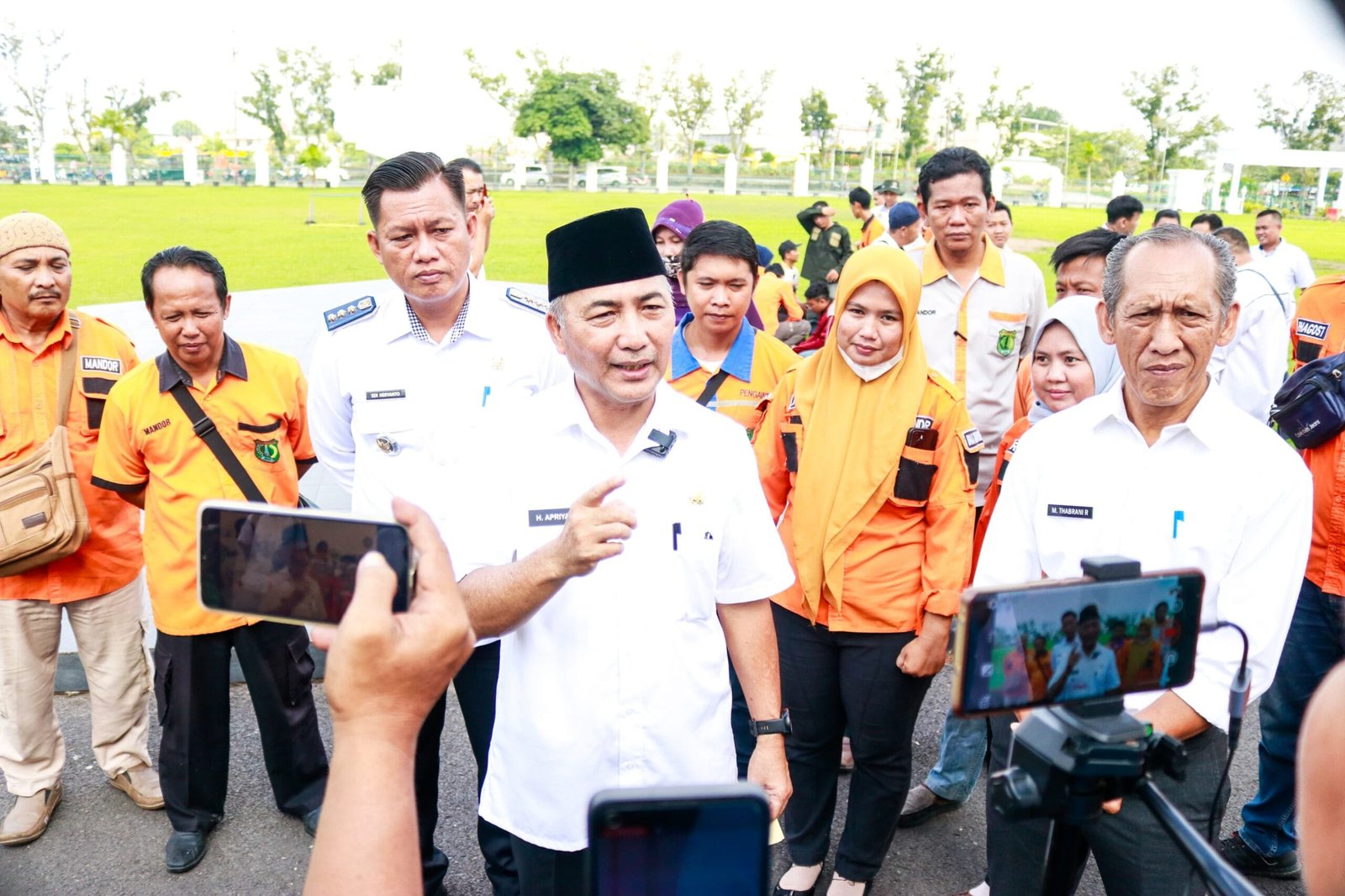 Suasana tersebut rupanya Pj Bupati Apriyadi Mahmud didampingi istri Asna Aini Apriyadi dan Plt Kepala Dinas Lingkungan Hidup Drs Thabrani Rizky menyalurkan Tunjangan Hari Raya (THR) sekaligus secara simbolis memberikan Piala Adipura ke-14 yang diraih Kabupaten Muba dengan kategori Kota Terbersih di Indonesia.