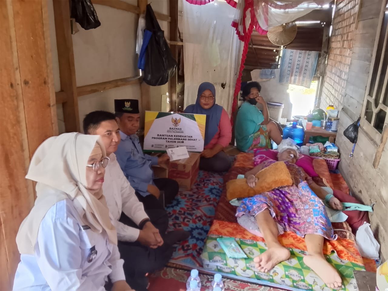 PALEMBANG, TRIKPOS.com — Badan Amil Zakat Nasional (Baznas) Kota Palembang kembali menyalurkan bantuan sosial bagi warga kurang mampu. Pada Rabu (26/11/2025) sekitar pukul 11.30 WIB, Baznas menyerahkan paket sembako dan santunan uang tunai kepada keluarga Ibu Cikyah, warga RT 27 RW 06 Kelurahan Keramasan, Kecamatan Kertapati, Palembang, yang saat ini tengah terbaring sakit stroke dan mengalami luka borok.