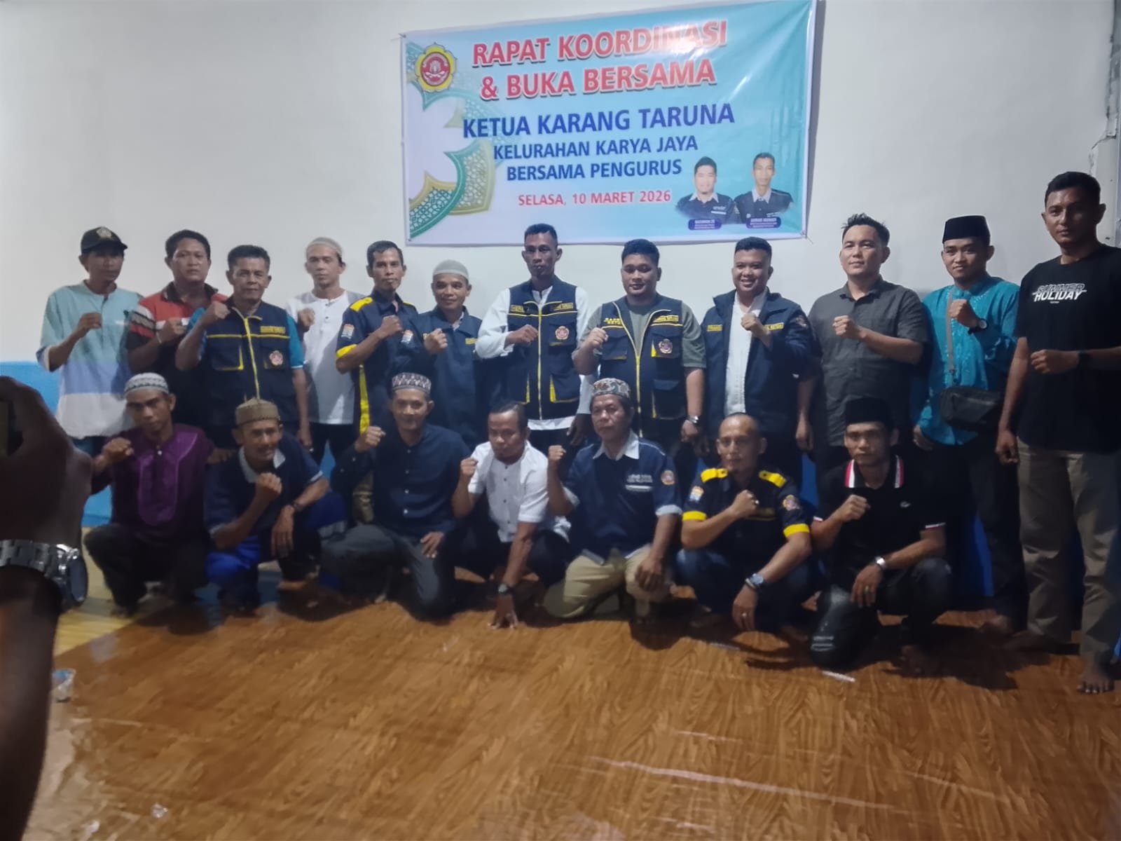PALEMBANG, TRIKPOS.com — Momentum bulan suci Ramadan dimanfaatkan para pemuda di Kelurahan Karya Jaya, Kecamatan Kertapati, Kota Palembang, untuk mempererat kebersamaan sekaligus memperkuat struktur organisasi kepemudaan. Hal itu terlihat dalam kegiatan buka puasa bersama yang digelar di sekretariat baru Karang Taruna Kelurahan Karya Jaya, Selasa (10/3/2026).