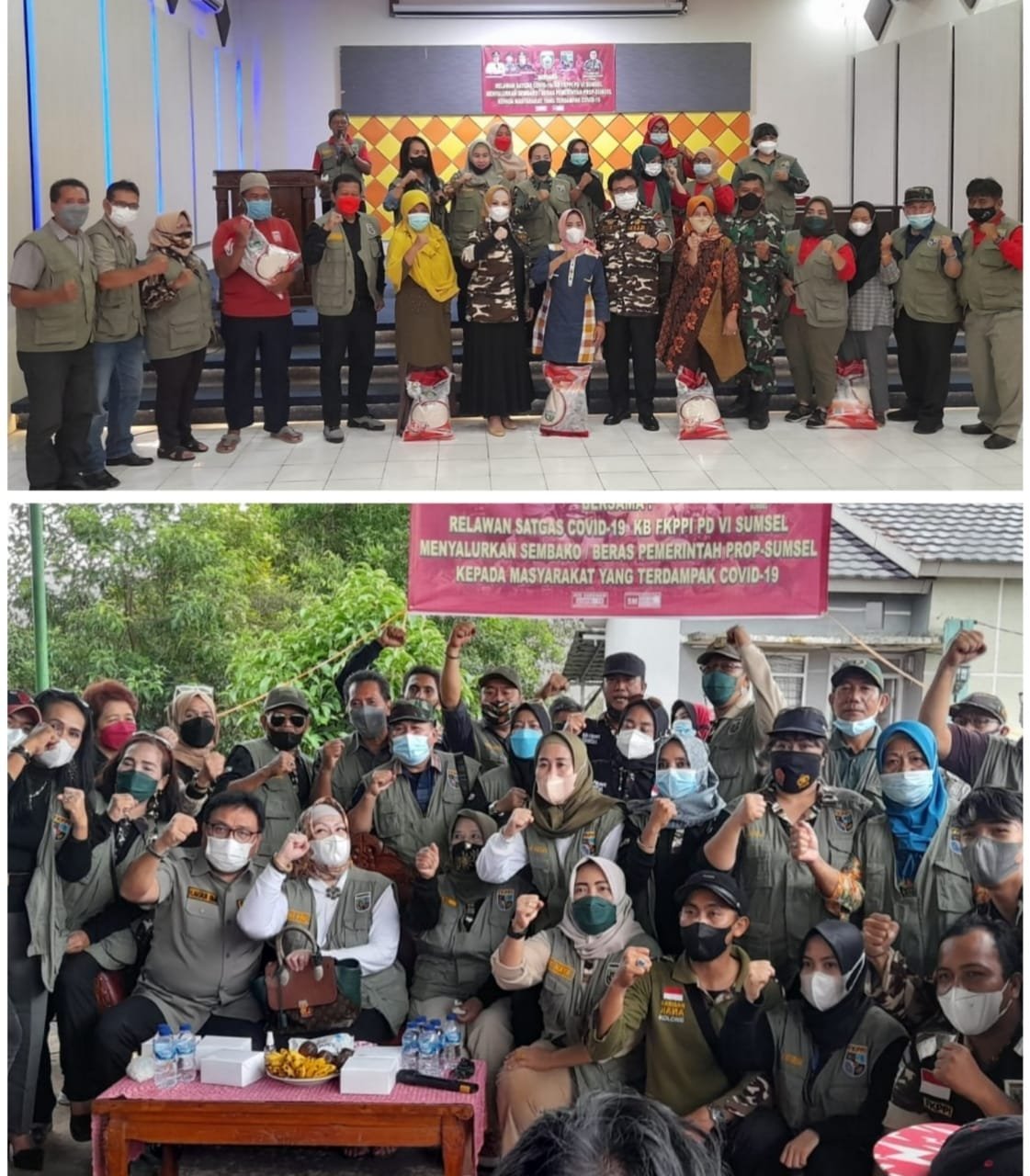 PALEMBANG – Relawan Satuan Tugas Covid-19 FKPPI Sumsel dalam momentum HUT FKPPI ke-43 kembali beraksi membantu masyarakat yang terkena dampak pandemi COVID-19 dengan menyalurkan beras baru-baru ini, di empat lokasi yaitu: Lorong Masjid RT. 045 RW. 008, Kecamatan Sukarame dengan Koordinator kegiatan Khairul Saleh, Komplek bougenville RT. 014 RW. 004 Kecamatan Alang-alang lebar dengan Koordinator kegiatan Bambang Artha dan Ella Hasan, MARKAS AJENDAM II/Sriwijaya, Sekojo dengan Koordinator kegiatan F. Yurnalis, Robby Khaidir dan Ester. Perumahan Surya Alam 2 Talang Jambe Kecamatan Sukarame dengan Koordinator kegiatan Rully Fitriansyah.