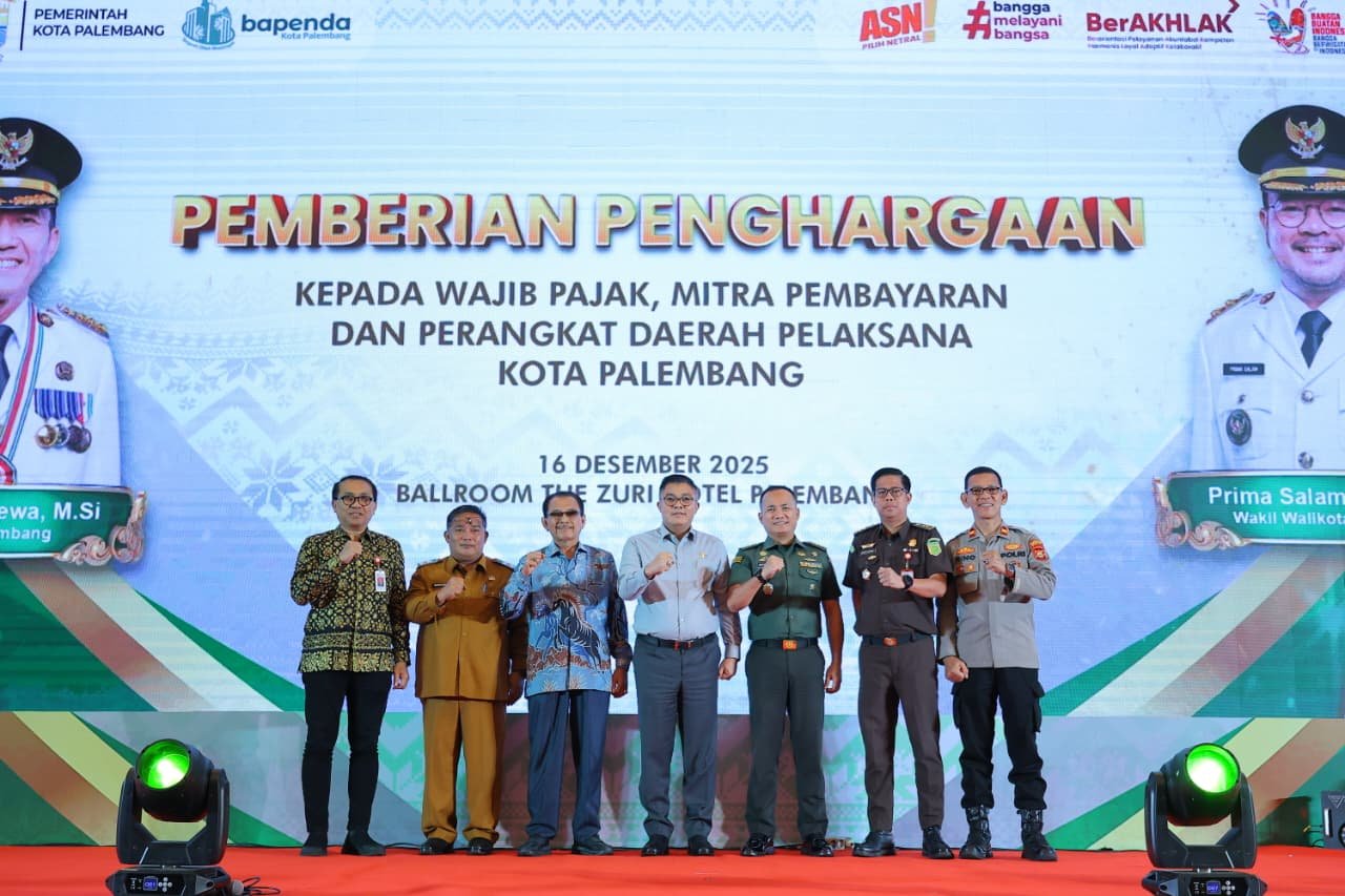 PALEMBANG, TRIKPOS.com — Pemerintah Kota Palembang memberikan penghargaan kepada Wajib Pajak, Mitra Pembayaran, serta Perangkat Daerah Pelaksana yang dinilai berkontribusi signifikan dalam mendukung optimalisasi penerimaan pajak daerah sepanjang tahun 2025.