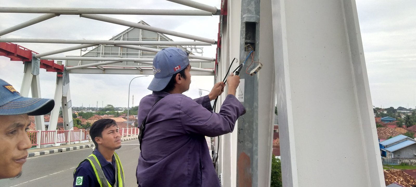 PALEMBANG , TRIKPOS.com – Lampu Penerangan Jalan Umum (PJU) di Jembatan Musi VI kini tengah dalam perbaikan oleh petugas Dinas Pekerjaan Umum dan Penataan Ruang (PUPR) Provinsi Sumatera Selatan. Hal ini dilakukan setelah kabel-kabel lampu jalan dicuri oleh oknum yang tidak bertanggung jawab, mengakibatkan jembatan tersebut gelap gulita pada malam hari.