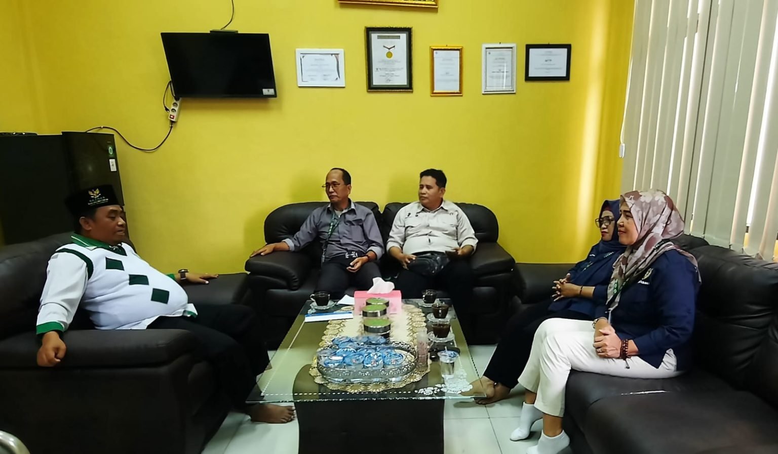 Ketua BAZNAS Kota Palembang Kgs. M. Ridwan Nawawi menerima audiensi PWI Peduli Sumsel yang dipimpin M. Rofei Husin dalam rangka menjajaki sinergi program sosial dan keagamaan di Kantor BAZNAS Palembang.