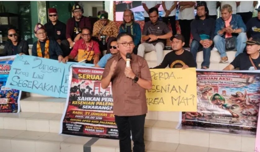 Sekitar pukul 10.00 WIB, puluhan seniman menggelar aksi damai di depan Gedung DPRD Palembang. Mereka menuntut satu hal yang dinilai krusial: pengesahan Perda Pemajuan Kesenian sebagai payung hukum kesejahteraan dan keberlangsungan ekosistem seni di Kota Palembang.