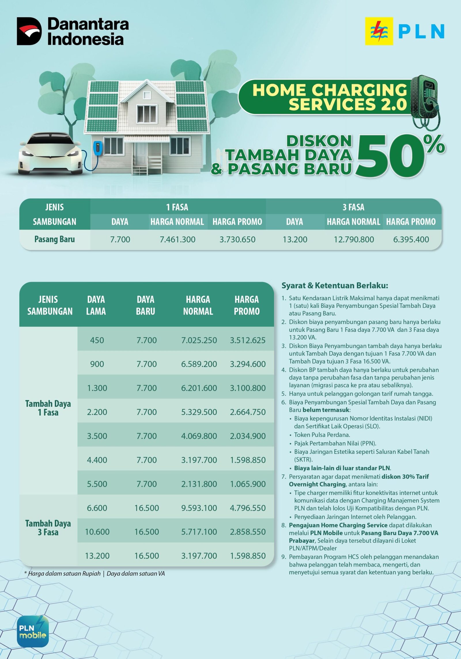 “Kami mengajak seluruh pelanggan untuk dapat memanfaatkan promo diskon 50% pasang baru dan tambah daya layanan Home Charging Services ini. Segera mendaftar melalui aplikasi PLN Mobile dan nikmati seluruh kemudahan layanan kami,” tutup Darmawan. (#)