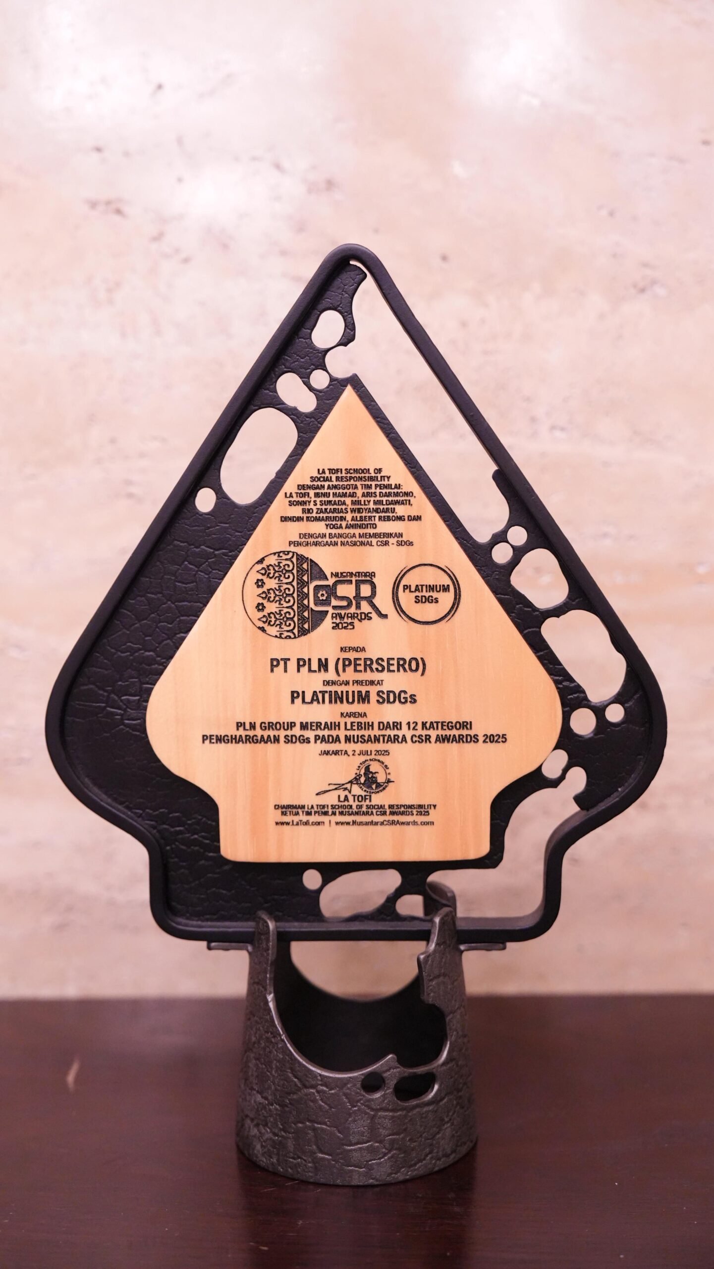Penghargaan diserahkan langsung oleh Chairman The La Tofi School of Social Responsibility, Taufik La Tofi, dalam seremoni yang berlangsung di Jakarta, pada Rabu, 2 Juli 2025 lalu. Pada kesempatan tersebut, dirinya mengapresiasi komitmen PLN dalam menjadikan _Corporate Social Responsibility_ (CSR) sebagai bagian integral dari strategi bisnis yang berkelanjutan.