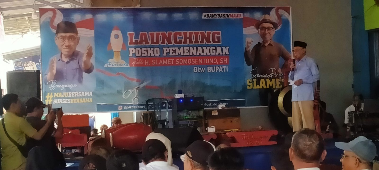 “Prabowo-Gibran Presiden dan Wakil Presiden, Mawardi Yahya Gubernur Sumatera Selatannya dan saya mohon doa dan dukungannya untuk saya Slamet Somosentono sebagai Bupati Banyuasinnyo kedepan dan kedepan kalau rakyat mempercayakan kita satu Komando Indonesia Maju, Banyuasin Maju Bersama,” tutup Pak De Slamet.