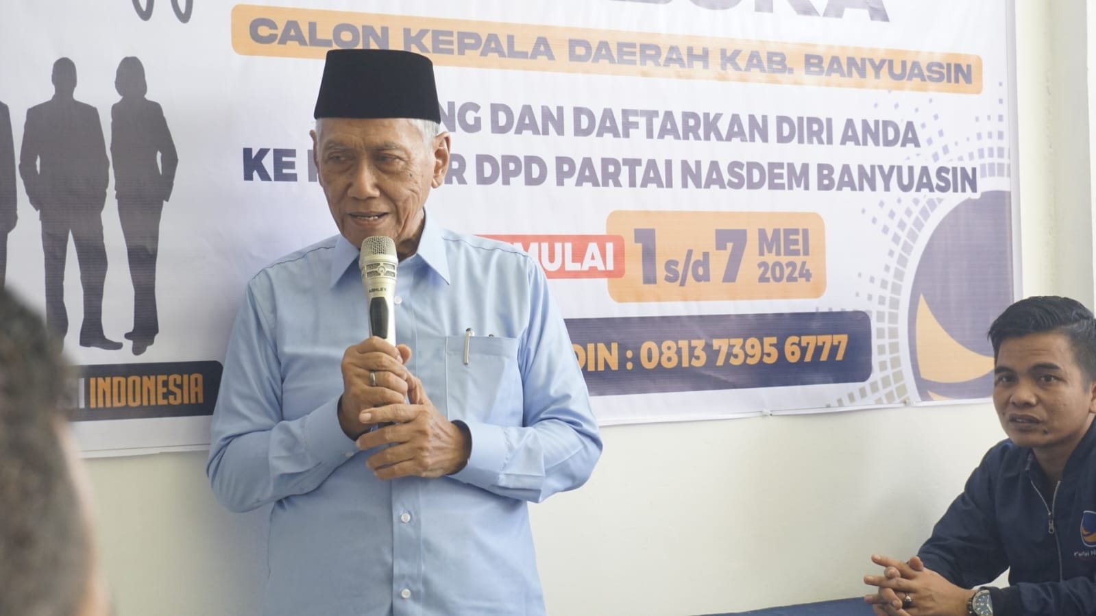 Nasdem Banyuasin memberi sinyal dukungan besutan Surya Paloh ini kepada Bakal Calon Bupati Banyuasin Slamet Somosentono. Hal tersebut disampaikan ketua panitia penerimaan bakal calon kepala daerah kabupaten Banyuasin, Daspini.