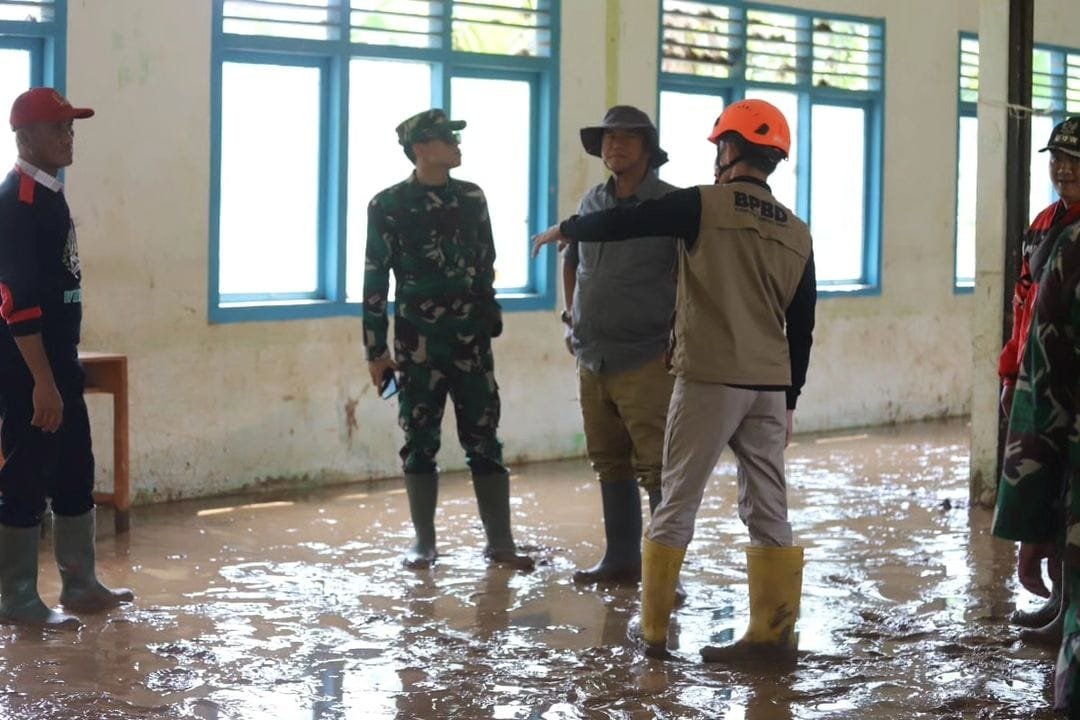 TRIKPOS,COM, LAMPUNG| Dandim 0422/Lampung Barat Letkol Inf Rinto Wijaya S.A.P., M.I.Pol., M.Han bersama Bupati Lampung Barat Drs. Nukman M.M turun langsung ke lokasi meninjau puing-puing sisa banjir beberapa waktu lalu di Kec. Bandar Negeri Suoh,