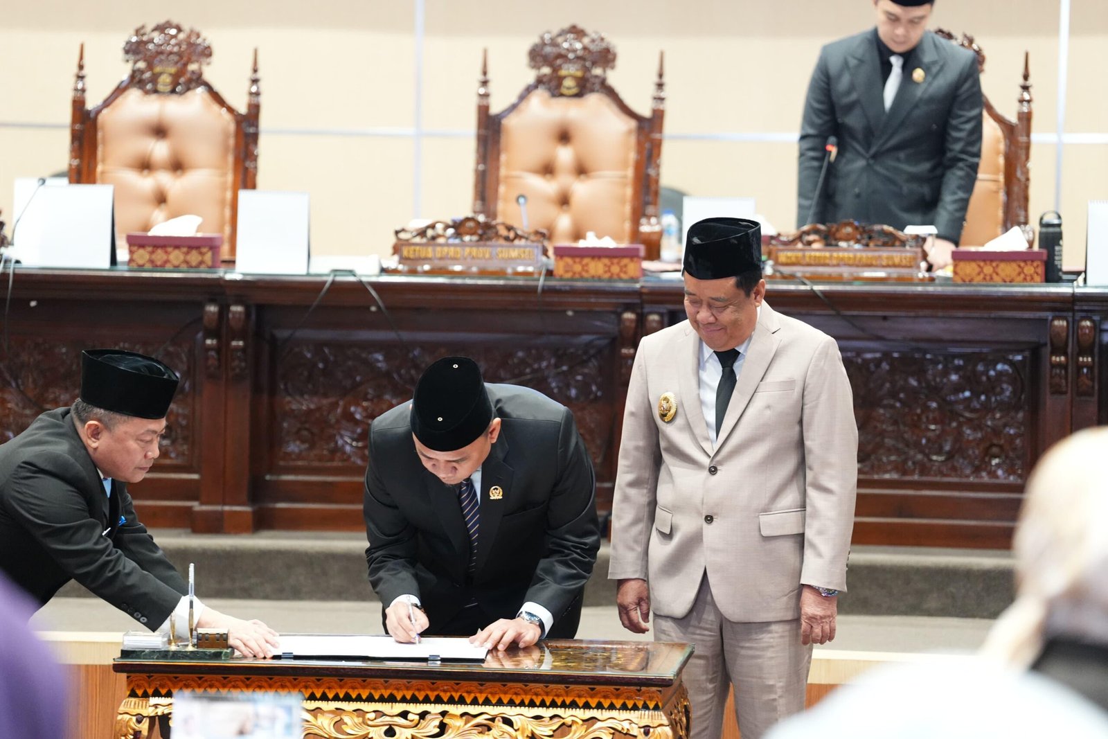 Sebagai penutup, Wakil Gubernur Sumsel H. Cik Ujang bersama Ketua DPRD Sumsel Andie Dinialdie menandatangani keputusan DPRD Provinsi Sumsel sebagai tanda resmi disahkannya pembentukan Pansus tersebut.