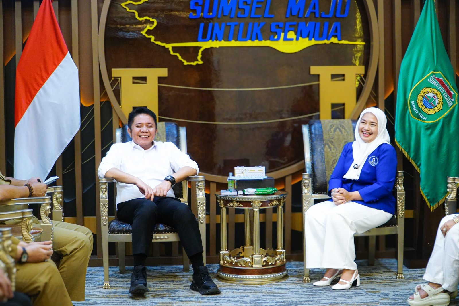 PALEMBANG, TRIKPOS com– Gubernur Sumatera Selatan (Sumsel), H. Herman Deru, menerima kunjungan Ketua Dewan Pimpinan Daerah (DPD) Ikatan Wanita Pengusaha Indonesia (IWAPI) Sumsel periode 2024-2029, Ir. Romiana Hidayati, beserta jajaran pengurus di Ruang Tamu Gubernur Sumsel, Selasa (25/3/2025).