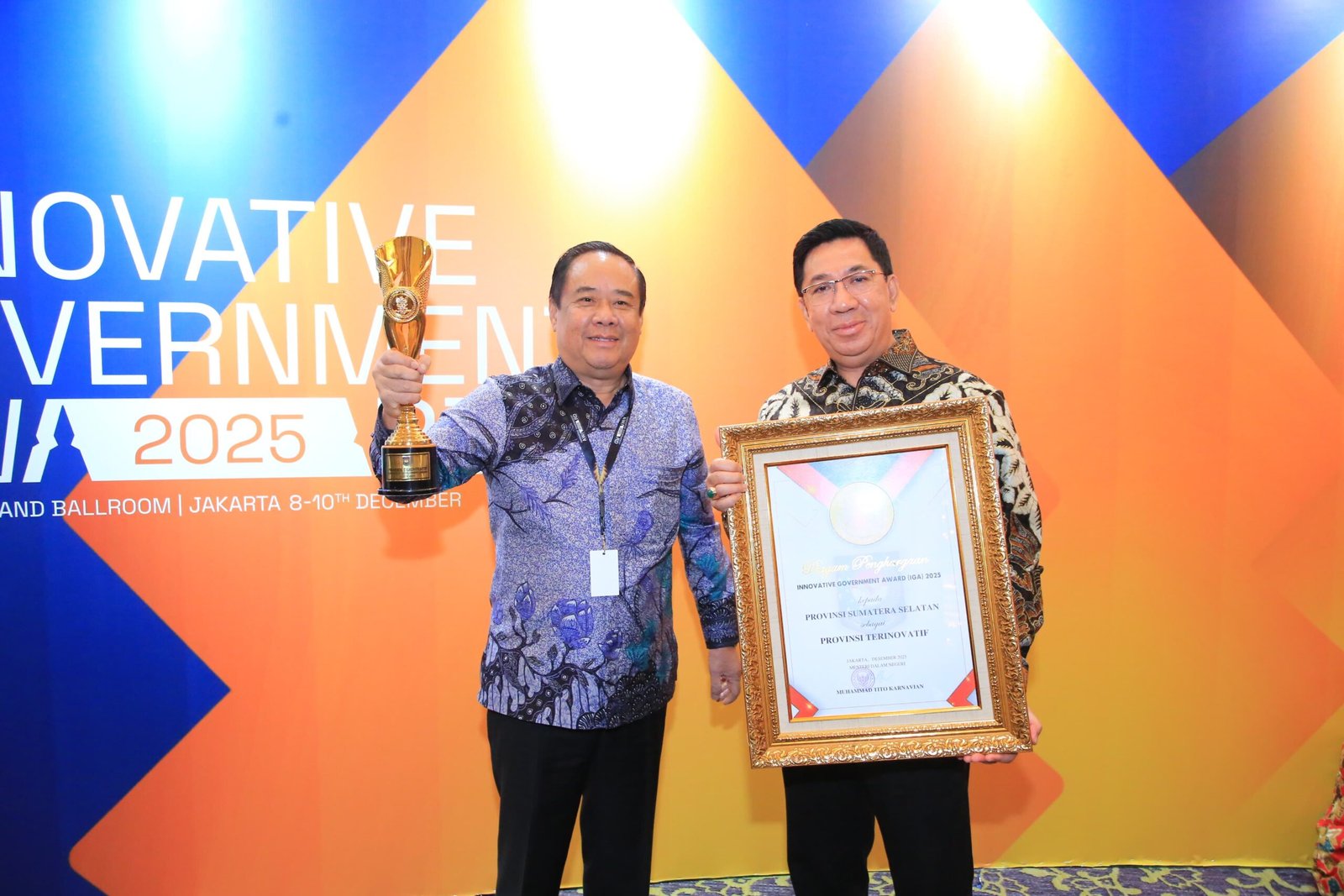 JAKARTA , TRIKPOS.com— Komitmen Pemerintah Provinsi Sumatera Selatan dalam mengakselerasi inovasi daerah kembali diakui di tingkat nasional. Pada ajang Innovative Government Award (IGA) 2025, Sumatera Selatan resmi dinobatkan sebagai Provinsi Terinovatif, bersanding dengan lima provinsi lain di Indonesia.