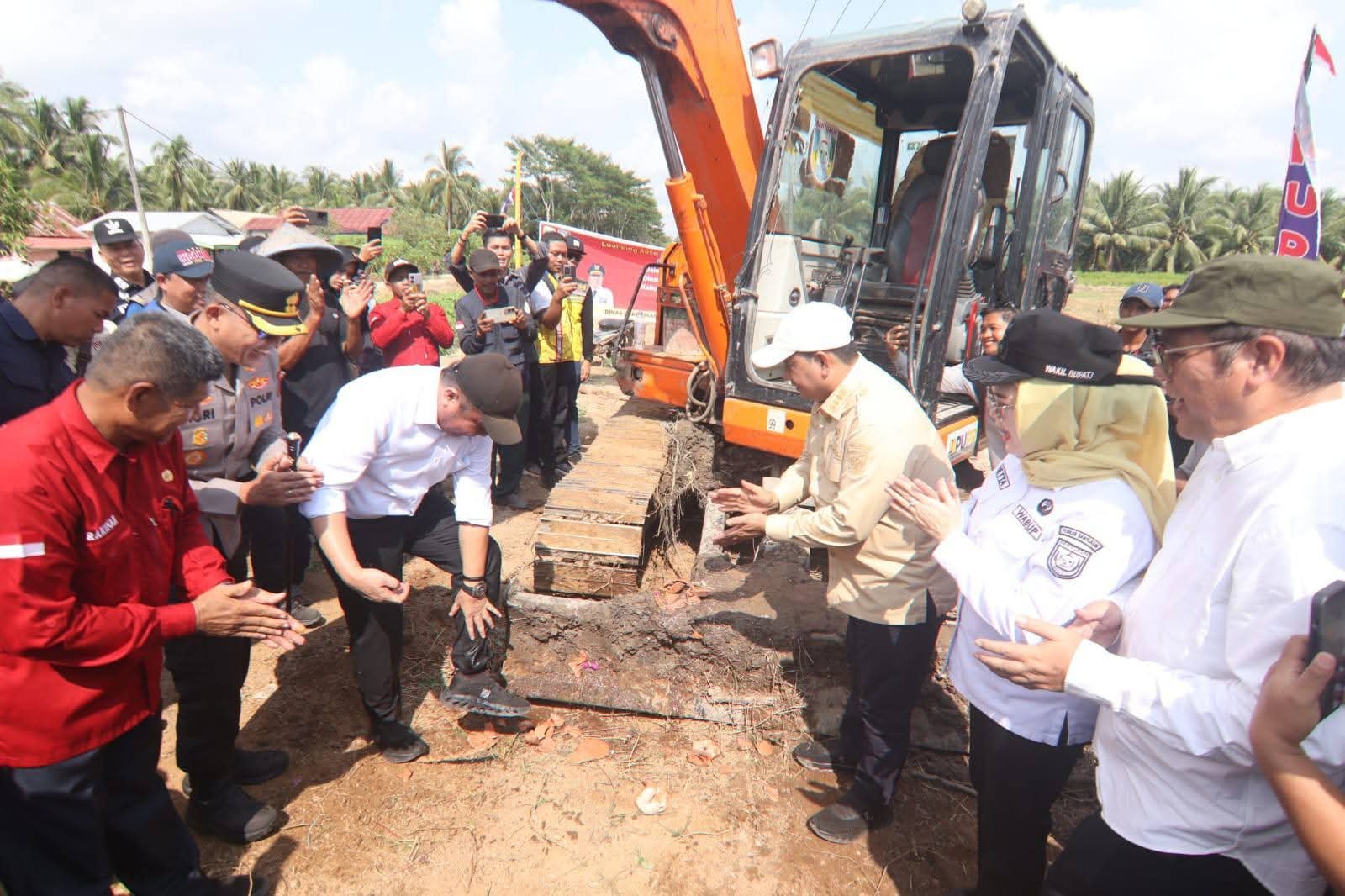 Foto : Bupati Banyuasin Askolani bersama Wakil Bupati Netta Indian, didampingi Gubernur Sumatera Selatan Herman Deru, di Desa Majuria, Kecamatan Karang Agung Ilir, Jumat (25/7).