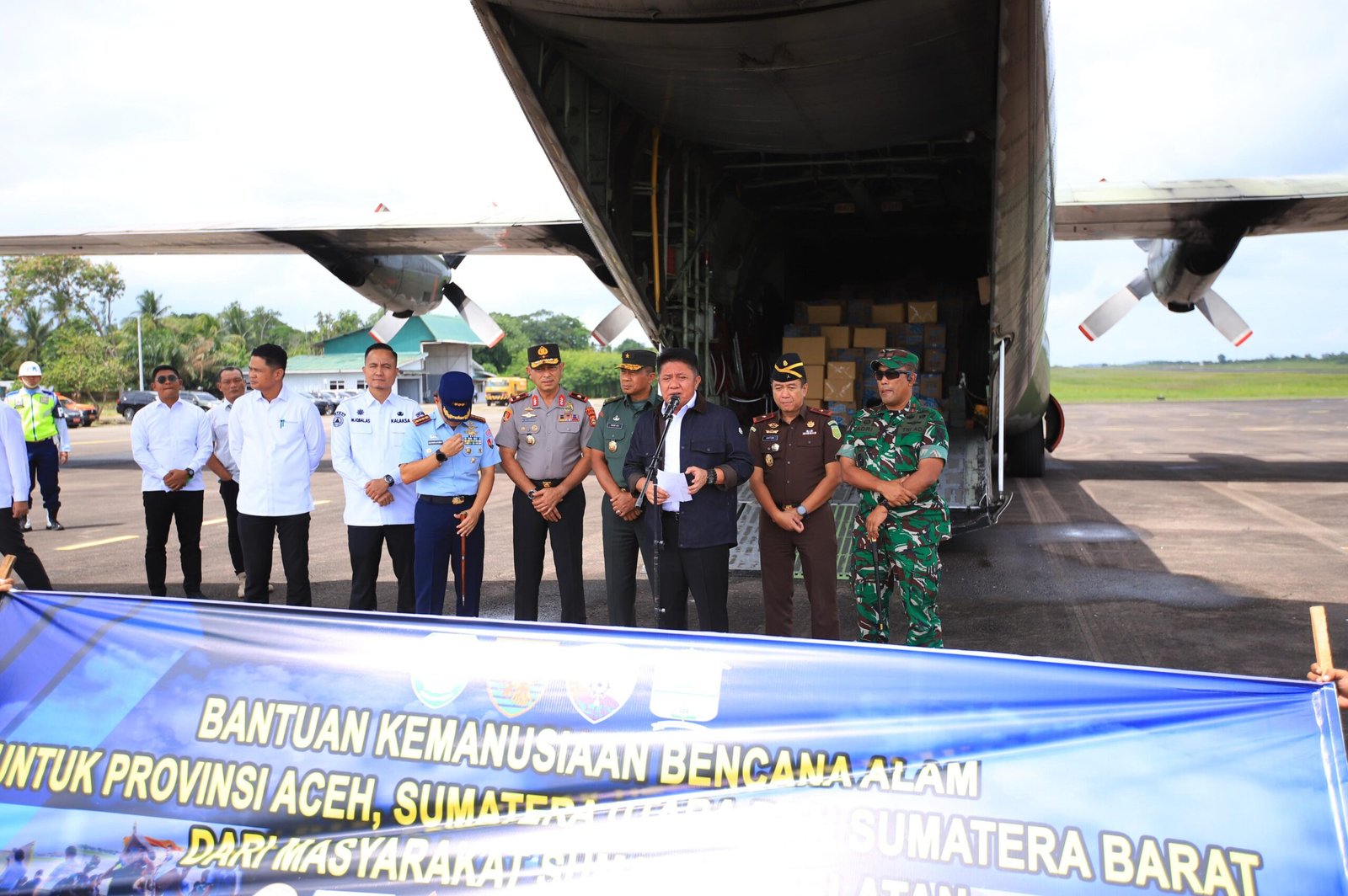 Gubernur Sumatera Selatan Dr. H. Herman Deru memimpin langsung proses pelepasan bantuan tersebut. Ia menyampaikan apresiasi kepada seluruh unsur yang berkontribusi, mulai dari Forkopimda, TNI AU, TNI/Polri, hingga jajaran Pemprov Sumsel.