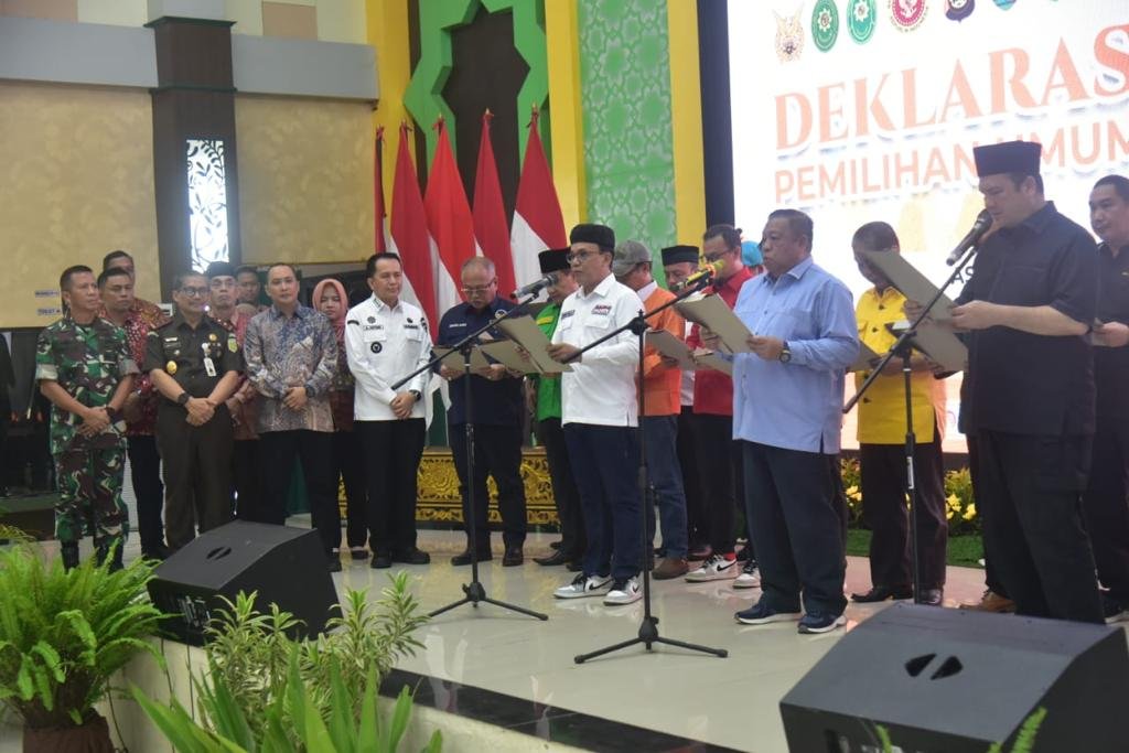 Sebagai informasi, Deklarasi Damai Pemilu Tahun 2024 di Sumsel ditandai dengan Pembacaan Deklarasi Damai Pemilu Tahun 2024 oleh Ketua Tim Pelaksana Kampanye pasangan Calon Presiden/Wakil Presiden Nomor Urut 1, 2 dan 3 serta para Ketua DPD/DPW Parpol yang disaksikan oleh Pj Gubernur dan Forkopimda. Kemudian dilanjutkan dengan Penandatanganan Deklarasi Damai Pemilu tahun 2024 dimulai Perwakilan Parpol, Forkopimda dan diakhiri oleh Pj Gubernur Sumatera Selatan Agus Fatoni.