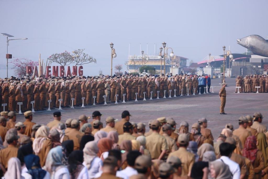 TRIKPOS.COM, PALEMBANG |  Penjabat (Pj) Gubernur Sumatera Selatan (Sumsel) Agus Fatoni mengingatkan para Aparatur Sipil Negara (ASN) Pemerintah Kota (Pemkot) Palembang untuk menjaga iklim bekerja yang baik. Hal ini disampaikan dalam apel gabungan perdana Organisasi Perangkat Daerah (OPD) di Pelataran Benteng Kuto Besak (BKB), Palembang, Sumatera Selatan, Senin (23/10/2023).