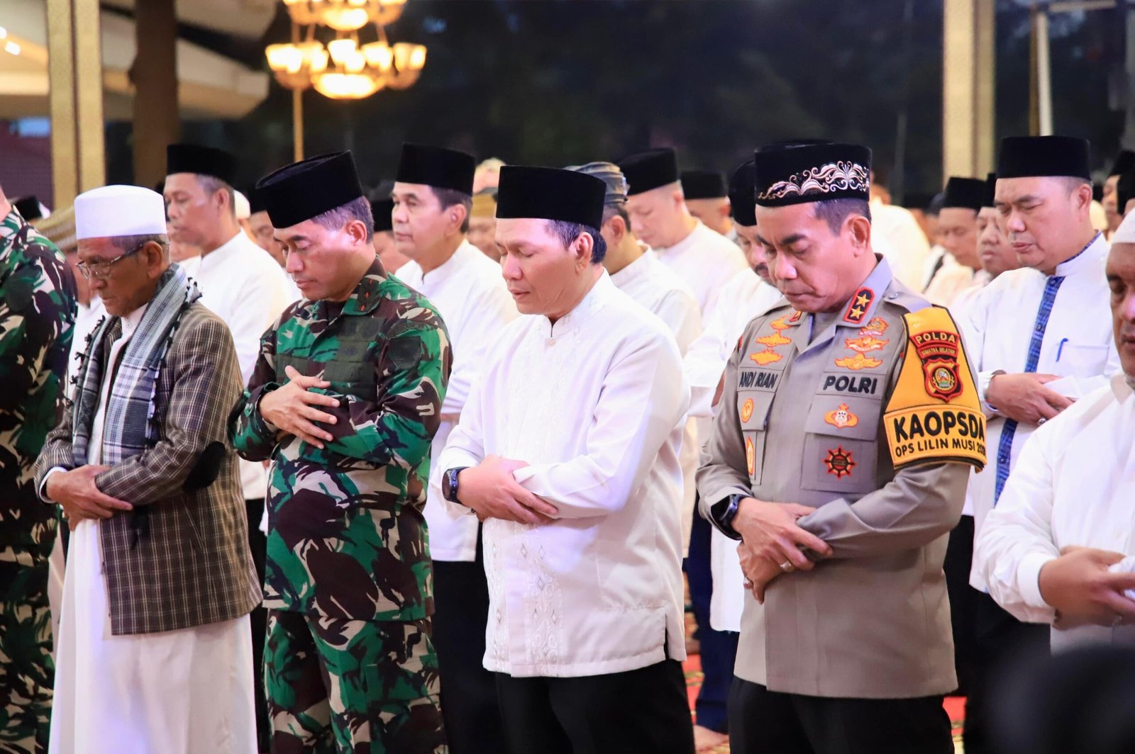 TRIKPOS.COM, PALEMBANG | Penjabat (Pj) Gubernur Sumatera Selatan (Sumsel) Elen Setiadi, S.H., M.S.E, melaksanakan sholat berjamaah dan doa akhir tahun 2024 bersama Forkopimda Sumsel, Kepala OPD Provinsi Sumsel serta Instansi vertikal lainnya bertempat di Griya Agung Palembang, Selasa (31/12/2024).