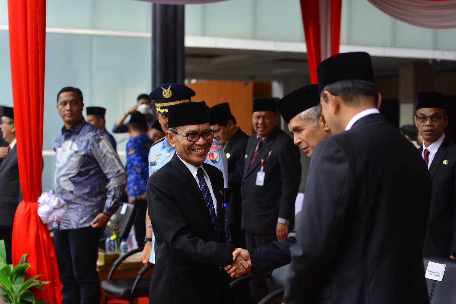 Bertindak sebagai Inspektur Upacara (Irup)  Sekretaris Daerah (Sekda) Ir S.A. Supriono degan peserta upacara  para  Pegawai Negeri Sipil (PNS) di lingkungan Pemprov Sumsel.