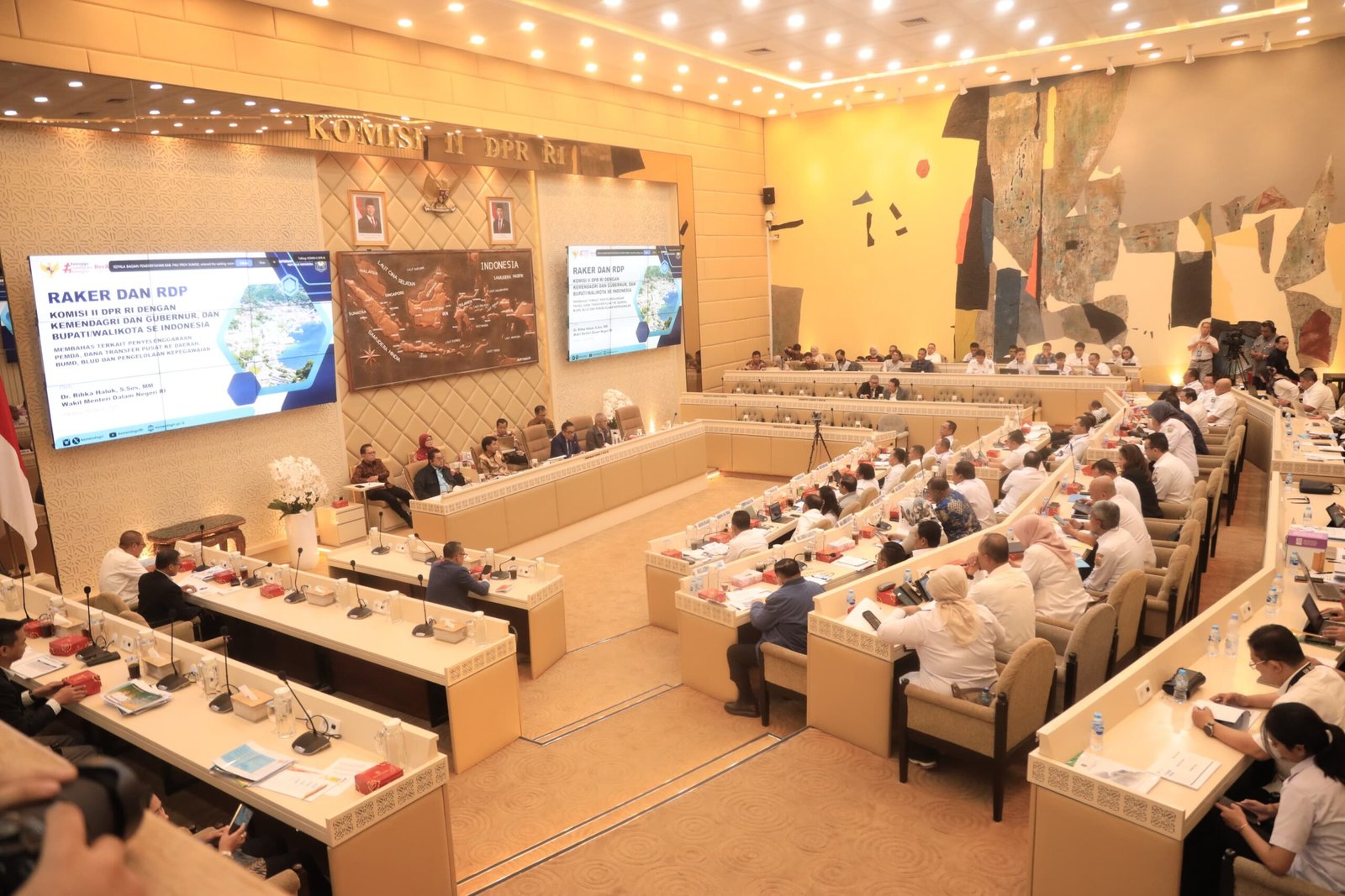 Raker tersebut dipimpin langsung oleh Ketua Komisi II DPR RI Rifqinizamy Karsayuda, dan turut dihadiri Wakil Menteri Dalam Negeri (Wamendagri), sejumlah gubernur, bupati, dan wali kota, baik secara langsung maupun daring.